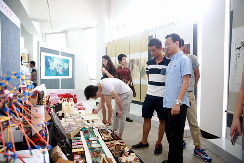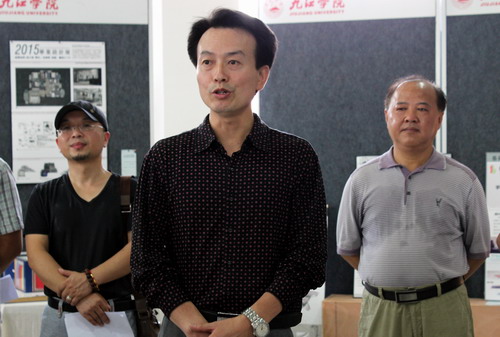 6月16日上午,艺术学院2015届优秀毕业作品展在逸夫图书馆一楼展厅顺利开幕。艺术学院院长吴维勇、党委书记王春生、副院长虞斌、欧阳时来、党委副书记沈杨、教务科科长汤艳、各教研室正副主任以及教师和部分毕业生代表参加,会议由环艺与工造教研室主任吴小亮老师主持。