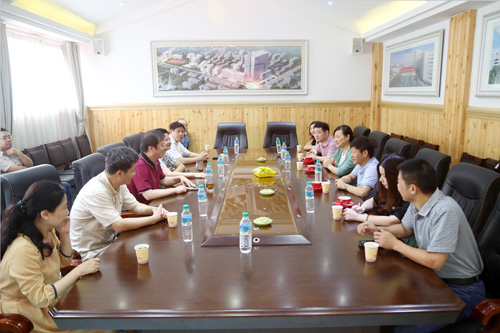 7月10日上午,庐山区人民医院胡小明院长一行六人来临床医学院/附属医院参观交流。临床医学院/附属医院在供应室四楼会议室召开洽谈会,张志平院长、张南华书记等在家班子成员及市场部、护理部、办公室的相关负责人参会。