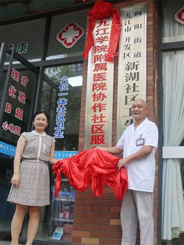 上午9时,临床医学院/附属医院欧阳副院长和新湖社区文科亮站长一起为“九江学院附属医院协作社区服务站”揭牌,这标志着,开发区向阳街道新湖社区卫生服务站正式成为了临床医学院/附属医院第一家挂牌的协作社区卫生服务站。