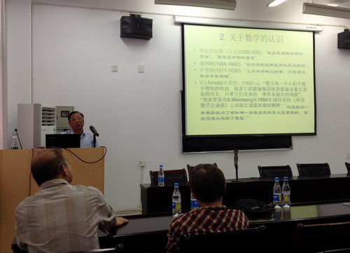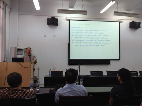 李继彬教授的报告题目为“动力系统和孤立波”。李教授系统地阐述了如何利用动力系统分支理论求解数学物理方程中的孤立波、圈波和破缺波等奇异非线性波并分析它们的动力学性质。指出即使在系统的不连续性的情况下,应探求可用于研究行波解的标准化方法。