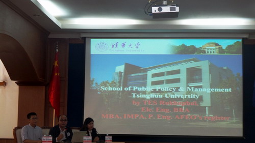 谢莫尼勒介绍了孔子学院发展与留学中国的汉语考试,播放了《十分钟看懂中国》宣传片,视频从人口、宗教、政治、历史、语言文字、经济、教育以及饮食文化等方方面面详细地介绍了当代中国,令与会人员迅速了解中国全貌。其后的柬埔寨王家研究院孔子学院6周年宣传片,从孔子学院的成立历史、取得的丰硕成果以及具体的办学条件和师资力量等方面进行介绍,令人一目了然。