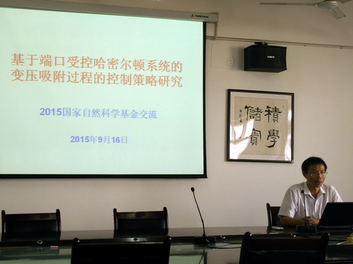 9月16日下午,电子工程学院举行国家自然科学基金项目的学术交流报告会,对学院彭辉博士今年获得的《基于端口受控哈密尔顿系统的变压吸附过程的控制策略研究》国家自然科学基金项目进行交流座谈,院长高小英和部分教师参加了此次学术交流活动。会议由张友木副院长主持,彭辉博士主讲。