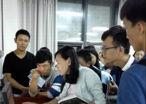 第二部分是在观看完视频后,图书馆老师带领同学们实地参观图书馆并进行讲解。在参观过程中,老师对图书馆的开放时间、藏书布局、服务窗口、服务内容及规章制度进行详细介绍,并对图书馆微信公众号、超星移动图书馆、图书馆预约讲座和电子阅览室的mooc在线学习课堂进行了广泛宣传。同时,各服务窗口的工作人员现场介绍了本窗口书库的馆藏类型、排架规律和服务内容,并举例演示了如何迅速查找所需文献资源的方法。实地参观引发了同学们极大的兴趣和热情,海量的文献资源让他们既兴奋又眼花缭乱,他们纷纷询问自己所学专业有哪些图书,该去哪里找这些图书等。