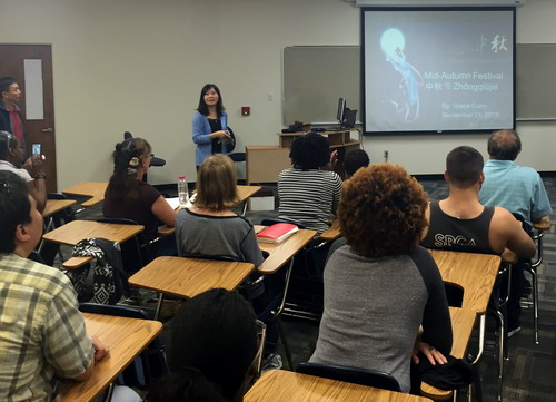 9月27日是中国传统节日中秋节,当天晚上,萨凡纳州立大学孔子学院在萨凡纳州立大学图书馆举办了庆中秋佳节活动。活动由萨凡纳州立大学孔子学院中方院长罗其娟主持,孔子学院师生、萨凡纳州立大学教师、萨凡纳州立大学九江学院交换生及当地社区中国文化爱好者约50余人齐聚一堂共庆中秋。
