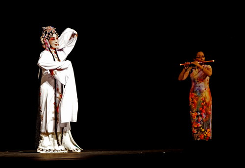 整场演出精彩纷呈,既有传统艺术京剧、川剧、昆曲和中国民乐笛子演奏,也有当代民歌演唱。演出以精彩的《川剧变脸》开始,纽约中国传统艺术中心的刘春暖老师的瞬间变换脸谱的绝活让观众惊叹不已;中国戏曲学院的程世君老师为大家表演了笛子独奏《姑苏行》和《小放牛》,优美的笛声仿佛将观众们带到了美丽的江南水乡;张泓教授演唱了《沂蒙小调》、《天路》、《美丽的心情》,观众们通过歌声了解到了中国的发展和变化;由刘春暖和任迎新两位老师表演的京剧《三岔口》将精彩的武功和诙谐幽默的表演展现得淋漓尽致;中国戏曲学院的涂玲慧教授为观众表演了京剧《拾玉镯》和昆曲<《牡丹亭·游园》,通过这两个曲目涂教授为观众展现了中国传统戏曲的曲调和唱段;京剧《盗仙草》将整场演出推向高潮,涂玲慧、刘春暖和任迎新三位老师为观众展示了精彩的京剧武打,观众们对于涂教授的“踢枪”等高难度的精彩演出报以热烈的掌声,演出结束后虽然应观众强烈要求加演了一个节目,但观众们意犹未尽,久久不愿离去。他们纷纷走上舞台和演职人员交流互动,表现出对中国文化的极大兴趣。