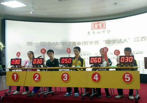 决赛分抢答和达人风采展两个环节,首先由主持人从题库中随机抽取10道题,选手按铃抢答,答对计10分,答错扣5分。随后,选手逐一进行2分钟左右的国学主题风采展示,选手们有的跳民族舞,有的演奏笛子,有的诵读经典……