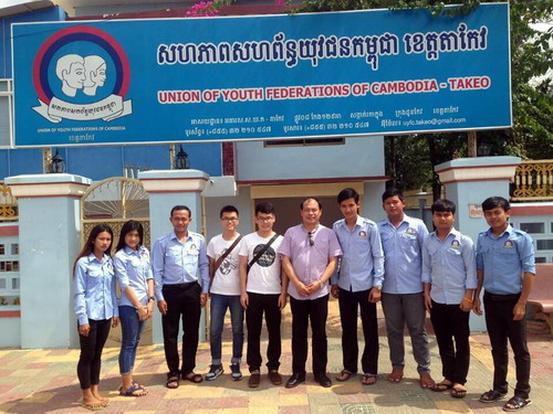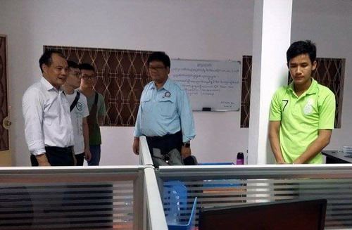 帅式毅先是送新任志愿者余洲、钱海乔到访茶胶省青年联合会汉语中心,受到了茶胶省青年联合会秘书长兴索昆(Mr. Heng Sokun)的热情接待。兴索昆介绍了茶胶省青年会的基本情况,茶胶省青年会成立以来,专注于本省青年的职业培训,先后开设了电脑课程、英文课程、高考补习班,相信将要开设的中文课程会受到青年会成员的欢迎。帅院长表示将加大茶胶省青年联合会汉语中心的建设,希望两位汉语教师志愿者教师平时没有中文课的时候来青年会从事志愿者工作,有可能的话还可以帮忙计算机和英文课的教学。