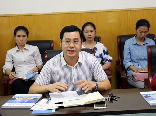 招生与就业处处长肖国丰,毕业生交流办公室主任兼招就处副处长罗双凤热情接待了交流团一行。双方在二号行政楼三楼会议室举行了交流见面会,招就处就业市场开发科全体人员及相关二级学院就业工作负责人员参加会议。