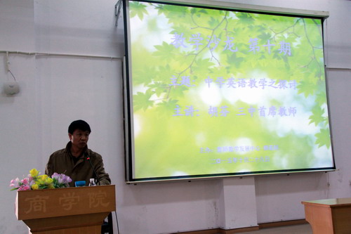 在我校英语教育专业学生即将走上实习岗位之际,为提高同学们的教学技能,帮助同学们尽快进入教师角色;同时为进一步加强我校承担英语教育专业授课的教师在课程设计开发方面与中学英语教学之间的衔接,10月28日下午,九江市第三中学首席教师胡芬应邀作客由教师教学发展中心和师范科联合主办的九江学院第十期教学沙龙活动,并做了题为《中学英语教学之探讨》的主题报告,活动由外国语学院副院长柴克清主持。
