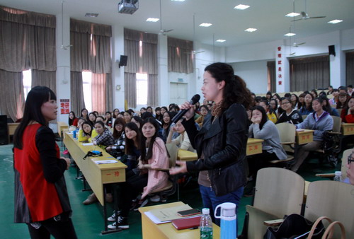 来自外国语学院英语教育教研室的全体教师及我校12级本科、13级专科英语教育专业的学生共计二百余人聆听了报告,并与胡老师进行了互动交流。