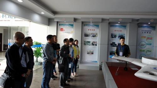 在南昌航空大学创业基地,南航团委颜琼部长热情接待了陈胜才一行。颜部长详细介绍了南航大学生创业基地建设情况以及学校如何对"三小"(小发明、小制作、小创作)科技项目的扶持方法,并陪同参观了成果展示厅。陈胜才等就大学生创新项目的立项、经费管理、成果认定等与颜琼部长进行了深入的交流,此行为机材学院成立大学生创新创业基地提供了有益的参考。