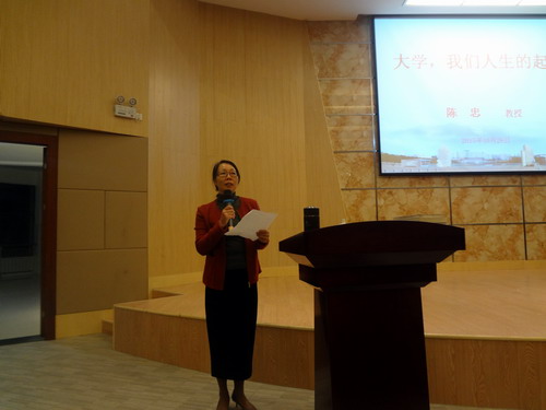 陈教授的讲座精彩纷呈,极具特色,始终与同学们互动,把同学们的热情激发出来,台下掌声不断。在整个演讲过程中,陈忠教授不断鼓励新生要树立自信心,把读大学当做人生的新起点,珍惜大好时光,充分利用学校的学习资源,大胆向老师请教、交流探讨,增长见识,增长技能。70多岁高龄的陈忠教授始终坚持站着为同学们作了两个多小时的讲座,他的精神令人感动与鼓舞,为同学们怎样读大学指明了方向,输入了满满的正能量。