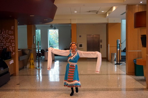 活动开始前,孔子学院中方院长罗其娟向大家介绍了孔子学院的基本情况,对阿姆斯特朗大学的热情邀请表示感谢,并欢迎大家到孔子学院学习交流。节目以张春子老师表演的充满了民族风情的藏族舞蹈《姑娘我爱你》开始,梁亚强老师为各国学生展示了精彩的太极拳拳术,我校交换生肖潇等合唱《明月几时有》,丁春雪老师为大家做了“中国剪纸艺术体验”的专题讲座。