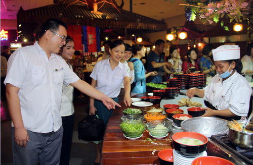 开班一个多月以来,蔡钦、何冬云两位任课教师为了让学员们快速掌握餐厅服务实用汉语,采取了各种灵活的教学方法,也得到了大剧院有关人员的积极配合。3位教师14日晚来到现场检测学员掌握所学汉语情况并进行现场教学,了解餐厅的中国客人和学员的交流情况。