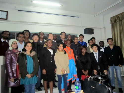 来自美国萨凡纳州立大学的交换生应邀参加了此次论坛并介绍了美国大学校园风貌、饮食习惯、商业文化、学生就业和美国的种族歧视等情况。来自柬埔寨、津巴布韦、南苏丹和肯尼亚的四名留学生分别作了精彩的演讲,展示了他们的国家风貌,引起了在场学生的浓厚兴趣。