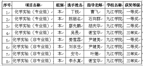 附:2015年江西省首届化学实验技能竞赛九江学院获奖名单