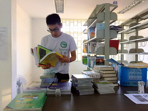 汉语教师志愿者余洲清点书目