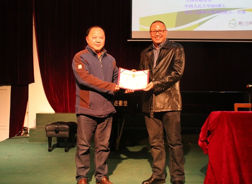 讲座前,党委书记王春生代表艺术学院向李友建总裁颁发了客座教授聘书。