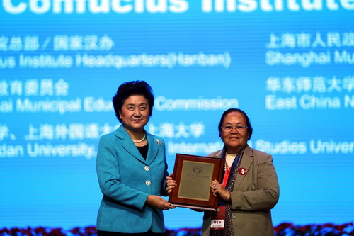 12月6日,中国国务院副总理、孔子学院总部理事会主席刘延东为王家研究院孔子学院颁奖