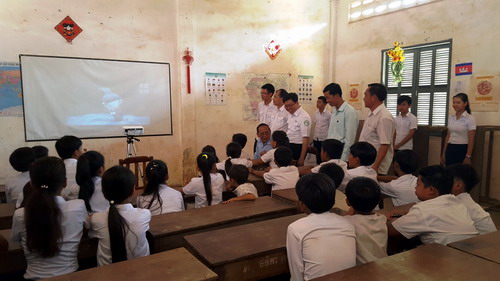 1月17日,柬埔寨王家研究院孔子学院2016年春节文化系列活动—大岛洪森中学汉语中心联欢会顺利举行。孔子学院院长谢莫尼勒阁下(HE CHEA Munyrith)、中方院长帅式毅先生,柬埔寨干拉省哥通县副县长英穆(Eng Mauk)、大岛洪森中学校长车奥克(Chhe Ouk)等嘉宾应邀出席联欢会,大岛洪森中学全体汉语教师志愿者及孔子学院学生约200人参加联欢会。