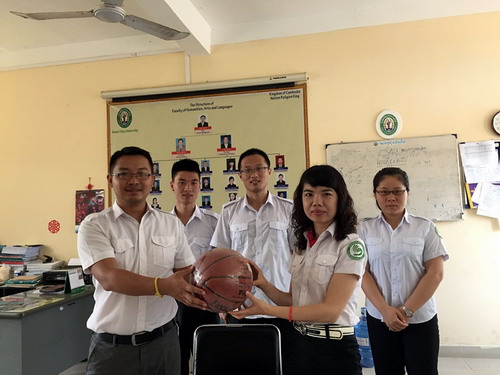 上午9点,会议在棉芷大学人文、社会、艺术与语言学院办公室举行。在会议上,赵雨老师首先向各位老师介绍了杨有帅老师的情况,并向杨老师详细介绍了棉芷大学中文系的汉语教学现状,明确各位老师的分工与职责,分配了教学任务。会上,杨老师表示自己会尽快融入棉芷大学中文系的工作团队,熟悉工作内容,尽早开展工作。她还表示愿与棉芷大学的师生打成一片,也希望棉芷大学各位老师共同努力,推进棉芷大学汉语教学更上一层楼。得知棉芷大学中文系的各位老师在课余时间爱好体育锻炼,杨老师特地向中文系的老师赠送了价值60美元的篮球一个。