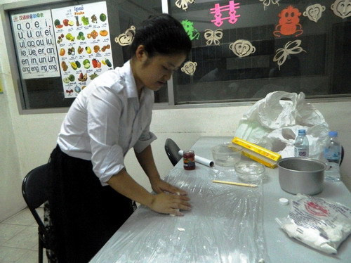九江学院选派的汉语教师志愿者汪子君老师以活泼生动的视频和图片给大家介绍了汤圆的传说故事、相关节日以及象征意义。学员纷纷惊讶于小小汤圆竟然包含如此多的吉祥蕴意。随后,汪老师示范了包汤圆的全部过程。和面团、擀皮、捏型、放馅料等一套熟练的动作让学生们看得目不转睛。学员们跃跃欲试,兴高采烈地加入了包汤圆的队伍,和面的和面,擀皮的擀皮......最后大家一起尝试包汤圆。不一会儿,一个个形状各异的大小汤圆被揉捏“出世”,虽然有的巨大无比,有的迷你瘦小;有的“露馅”,有的“开裂”,但学员们上手很快 ,越包越好 。大家一边包得不亦乐乎,一边讨论汤圆馅料的做法。整个课堂欢乐温暖、融洽无比。