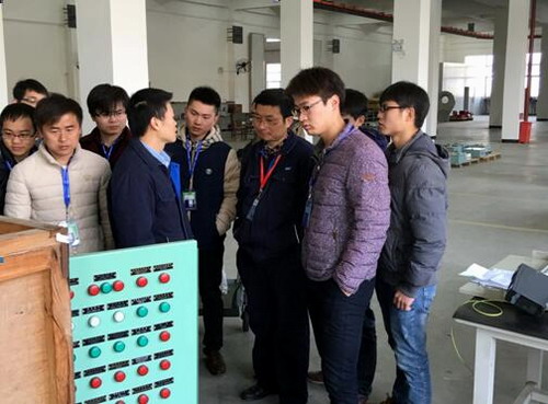 毕业设计企业指导教师、公司质量部主任龚根平带领同学们参观了燃烧器车间。为了让大家更加了解,龚主任请来了热能工程事业部刘太孝高工给同学们详细地讲解和演示陆用与水用燃烧器的结构与控制原理。刘高工希望同学们通过学习吸收、能够创新地对燃烧器提出优化的想法。