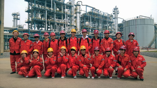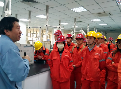 见习期间,学生受到了企业的热情接待,九江石化教培中心和见习的车间都委派了专门技术人员对整个见习的内容进行了详尽指导和解说。在生产管控中心,通过技术人员的介绍,了解了油品检测过程和标准,懂得了水质如何进行分析,明白了大气如何进行监控。在炼油运行五部、炼油运行六部和聚丙烯生产车间,通过技术人员的介绍,同学们了解到这三个车间的工艺装置、工艺流程、工艺技术及产品去向等情况。在见习中,同学们对车间的布局和实际的生产过程装置有了深入的直观感受,加深了对生产工艺的理解。