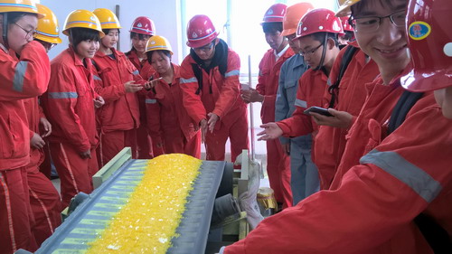 为增强同学们对化工生产装置的实践认识、提高专业实践技能,3月15-16日化环学院材料化学专业大三本科班、应用化工专业大一和大二专科班、工业分析与检验大二专科班100余名学生,在学院教师的带领下分批赴中石化九江分公司展示室、生产管控中心、炼油运行五部、炼油运行六部、聚丙烯车间进行参观见习。