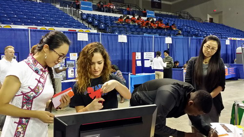 美国当地时间3月19日,萨凡纳州立大学孔子学院教师们参加了萨凡纳州立大学在大学球类馆举办的春季“校园开放日”活动。