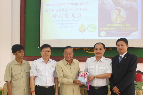 交流会上,帅式毅院长向参议院隆才副秘书长赠送了《诺罗敦·西哈努克时代的柬中关系》一书。