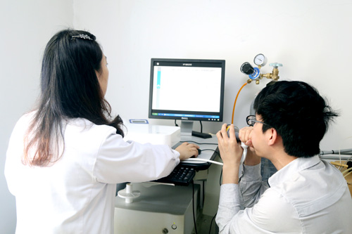 FeNO检测是近年来呼吸科开展的一项新型、无创检查,相比其他无创炎症检查技术过程更加简单方便,结果精确可靠,重复性好,是一种理想的评估气道炎症性疾病的无创检查方法。童建林主任介绍,FeNO检查只需要患者配合做呼气动作,仅几分钟就可以完成检查。它主要应用于慢性咳嗽的诊治、支气管哮喘的诊断和规范化管理,同时对特异性变态反应、肺炎、支气管炎、慢性阻塞性肺病、支气管扩张、间质性肺疾病的鉴别、诊断和治疗具有指导意义。