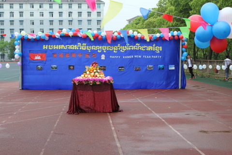 4月16日是柬埔寨新年的最后一天,我校来自柬埔寨的孔子学院奖学金生在学校北区田径场举行了庆祝活动,国际交流学院老师和来自各国的留学生以及中国学生共同庆祝柬埔寨新年。