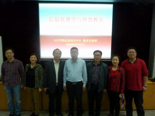 4月21日下午,根据在岗培训计划,学院邀请了九江学院区域信息化工程技术研究中心的梅龙宝教授为全院教师讲授了《信息化教学与智慧教育》。梅教授首先介绍了时下流行的一些信息化教学的方法和手段,如慕课、翻转课堂、可汗大学等,利用实例和图片详细展示了这些教学方法的优越性。随后,根据现代信息化教学前沿热点,为全院教师阐述了今后教育教学的发展趋势——智慧教育,并通过视频短片演示了智慧教育的全过程。