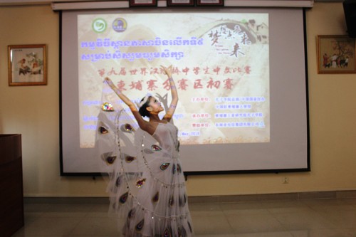 “汉语桥”柬埔寨赛区预选赛大、中学生共76名选手参赛。预选赛分为中文演讲和才艺表演两个环节。