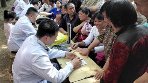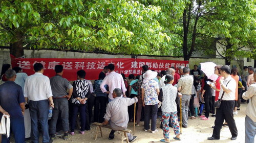 健康扶贫是基础。佛坳村交通不便、医疗卫生资源有限,村民健康知识缺乏、就医困难,因病致贫是佛坳村贫困的重要原因。为此,副主委汪文丰、医卫支部主委彭桂清带领送医义诊团队开展送医送药送健康活动。夏晓蓉儿科主任医师、秦穆英心理健康咨询师、张萍皮肤科主任医师、邹小新呼吸科副主任医师、聂鹰外科副主任医师、董俊内分泌科副主任医师、温鹏程心血管科主治医生、何青平主管护师等为佛坳村村民开展送医义诊、免费送药和健康咨询。义诊期间,董俊主任医师做了“糖尿病预防和治疗”的健康讲座。针对佛坳村村民癌症多发情况,杨平华博士主动收集佛坳村多个水源样本带回九江学院分析测试中心进行水质检测,分析癌症诱发病因。送健康活动如及时雨,受到当地村民的热烈欢迎,反响极其强烈。