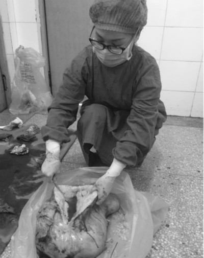 入院检查发现患者腹部膨隆,彩超及磁共振提示腹腔内巨大实质性包块,来源不详,检查无明显禁忌症,且有手术指征,妇科陈桂英主任决定为其行剖腹探查术。术中见包块来自后腹膜,如足月妊娠大小占居整个腹部,子宫附件被推移至右侧盆壁,肠管被推移至右上腹部。