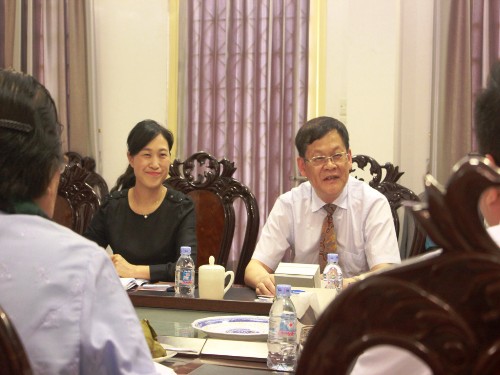 克洛媞达院士致辞欢迎贵州师范学院代表团的到来。她指出,中柬两国关系源远流长,是老朋友、真朋友,教育是推动社会进步、经济发展的强大力量,师范学院有着更重要的作用。谢莫尼勒阁下介绍了柬埔寨王家研究院孔子学院的发展历史、师资队伍的结构和建设、科学研究的质量和水平等。帅式毅院长详细介绍了孔子学院的汉语教学情况及近年来取得的成就,并赞赏贵州师范学院是4月份在孔子学院举办留学中国(贵州)教育展后首个来访并落实有关项目的高校。