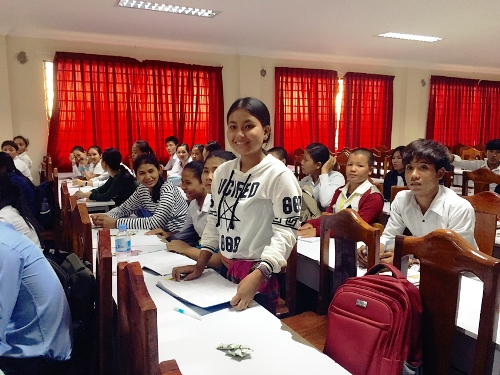 接下来,蔡老师又为学生们简单地介绍了柬埔寨送水节的历史文化背景及风俗习惯,并把中国的端午节与柬埔寨送水节进行比较,让学生进一步地了解二者之间的异同。学生提问环节大家踊跃发言,蔡钦和汉语教师志愿者胡阔锋耐心地一一为大家解答。