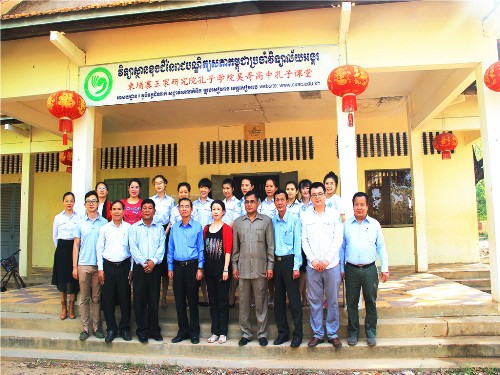 6月5日,中国和平发展基金会俞小萱副秘书长率团莅临柬埔寨王家研究院孔子学院吴哥高中孔子课堂参观访问。期间,与柬埔寨教育青年体育部国务秘书皮查南阁下(PIT Chamnan)一行共同出席了中国和平发展基金会援建吴哥高中新教学大楼项目的揭牌仪式。