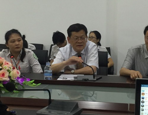 李存雄校长盛赞亚欧大学中文系所取得的成果,并对留学中国的柬埔寨学生汉语水平提出了具体的要求。他希望亚欧大学能分享与九江学院合作交流的经验,尤其是电子图书馆远程链接的相关技术和经验。李校长诚挚地邀请谢索皮校长到贵州师范学院参观考察。