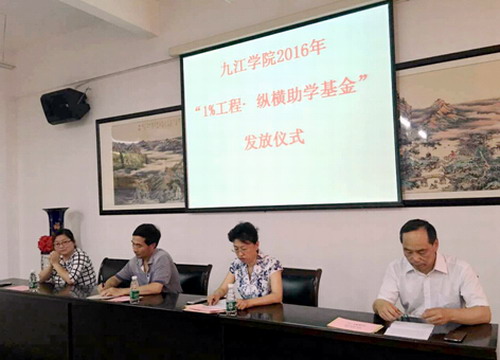 “1%工程”是由民进江西省委会和省青少年发展基金会于2009年共同发起创立。“1%工程”的宗旨是:捐献1%,爱心100%。倡议民进会员中的爱心单位和个人捐献年收入的1%,建立专项助学基金,用于资助贫困学生。这是“1%工程”自成立以来第八次在九江学院进行助学金发放,截至目前,该公益活动共为九江学院82名学生发放了助学金。本次发放的助学金由江西省纵横管理顾问有限公司捐赠。