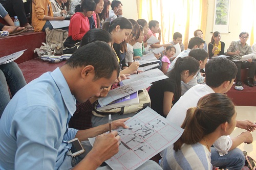 6月25日,柬埔寨王家研究院孔子学院举办了中国书法为主题的文化讲座。公派教师孙海瑞为孔院师生介绍了中国书法的起源、字体演变、书写工具及书法大家,学生们对中国书法产生了浓厚的兴趣,并饶有趣味的进行学习。