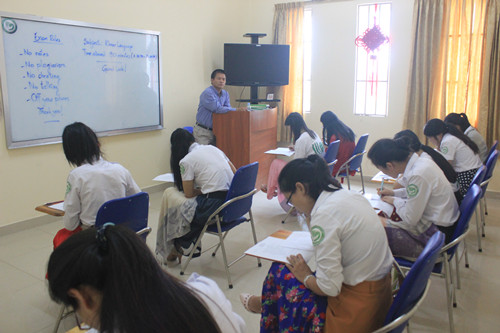 柬埔寨王家研究院孔子学院根据洪森总理的指示,从2013年开始为孔子学院的汉语教师志愿者开设柬埔寨语言文化培训班,今年已是第三期,前两期成功培训了20名学员。(赵金燕 )