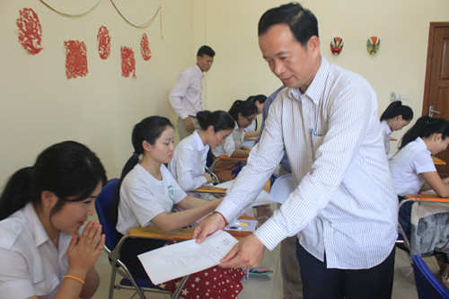 7月5日,柬埔寨王家研究院孔子学院汉语志愿者教师柬埔寨语言文化培训班结业考试在孔子学院大楼教室举行。柬埔寨王家研究院国家语言委员会秘书长萨皮阁下(H.E. SAN PEOU)与柬埔寨王家研究院孔子学院中方院长帅式毅共同开启本次考试,孔子学院的11名汉语志愿者老师参加了考试。