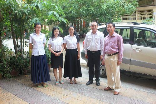 7月11日,柬埔寨王家研究院秘书长李树提龙(H.E.LY Sothyrath)阁下在孔子学院中方院长帅式毅先生的陪同下,看望孔子学院汉语教师志愿者,视察住宿环境。