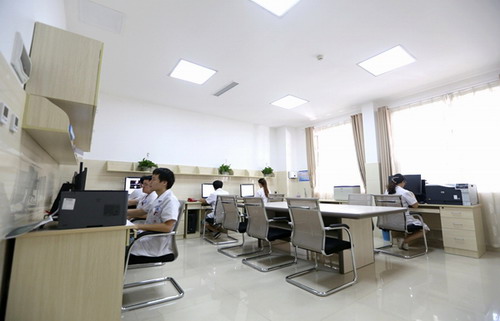 蓝天、碧海、沙滩……在治疗室,逼真美景融入到科技感极强的装修风格中,灯光设定科学而温馨,置身其中如临夏日海滨,类似于将患者仰视的天花板做成可亮光的蓝天白云图案设计,能极大消除其放射治疗时的恐惧感,尽显人文关怀。预约等候区明亮洁净,整排的皮质沙发,清爽而舒适。定位室、制模室、操作室紧挨机房入口,整个治疗区域位于西院住院楼的负一层,计划室、模具室、医生办公室等位于一楼,放疗患者可从病区电梯直达底层,分区布局科学合理。放疗科环境清新自然,令人印象深刻,放疗室的布局和装修独树一帜,秉承了临床医学院/附属医院在改善患者就医体验工作上一贯的高品质格局,充分体现了附属医院“以人为本、以病人为中心”的服务理念和宗旨。