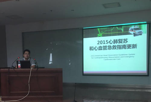 急诊科曹学锋医师通过幻灯片课件,图文并茂地讲解了《2015心肺复苏指南的更新》。