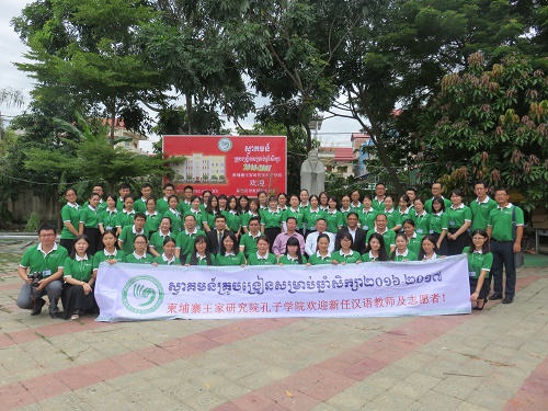 9月12日,柬埔寨王家研究院院长、孔子学院理事长克罗媞达阁下(H.E.KHLOT Thyda),王家研究院秘书长李树提龙阁下(H.E. LY Sothyrath),柬埔寨王家研究院孔子学院院长谢莫尼勒阁下(H.E.CHEA Munyrith)、中方院长帅式毅先生、新任中方院长夏修龙,国家汉办志愿者管理老师赵玉玺先生、张智波先生与新教师及志愿者亲切见面,并进行了座谈。
