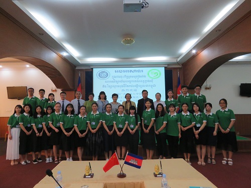 9月13日,中国广西科技大学党委副书记覃萍女士、国际合作与交流处处长邓杏华一行到访柬埔寨王家研究院孔子学院。孔子学院理事长克洛媞达院士(Academician KHLOT Thyda)、孔子学院院长谢莫尼勒阁下(H.E.CHEA Munyrith)、公派教师陈晶雯以及孔子学院志愿者教师热情接待了来宾,双方进行了友好会谈并签订教育合作与交流协议。
